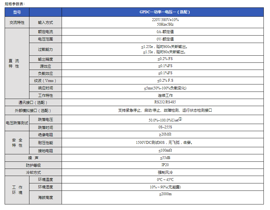| GPDC系列是一款工业级高精度的可程控直流电源,成功结合了脉宽调制技术(PWM),每台设备均配备了西门子等国外IGBT核心执行元件,大功率机器采用结构均流技术,并配以各种完善的保护功能,是一种性价比优异的直流电源产品。该系列可zui高输出电压2000V、zui大输出电流2000A,可选配通讯接口、触摸屏和程控功能等,方便使用人员模拟更复杂的测试条 |